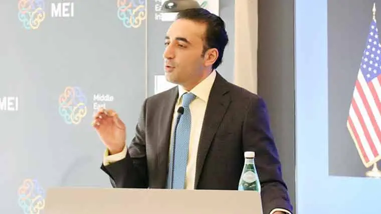 مڈل ایسٹ انسٹیٹیوٹ میں اظہار خیال کرتے ہوئے پاکستانی وفد کے سربراہ بلاول بھٹو نے کہا کہ بھارت اقوام متحدہ کے چارٹر کے برخلاف پاکستان کے 24 کروڑ افراد کے پانی کے حق پر حملہ کر رہا ہے۔