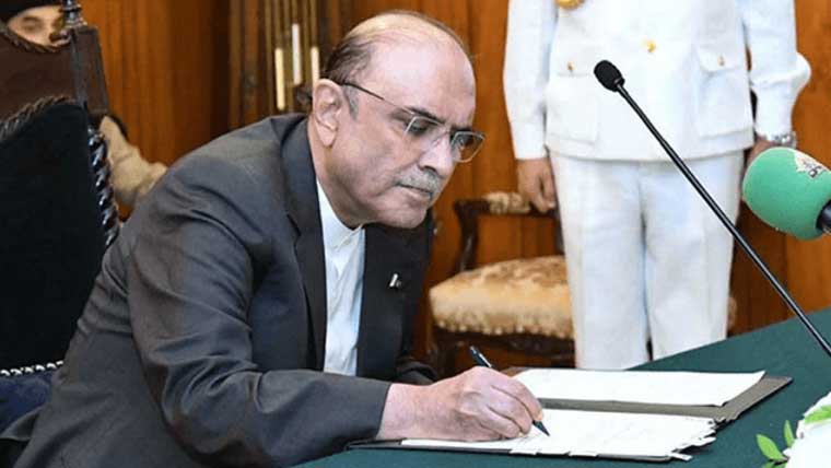 صدر مملکت آصف علی زرداری کی توثیق کے بعد بل گزٹ نوٹیفکیشن کے لئے بھجوا دیا گیا۔