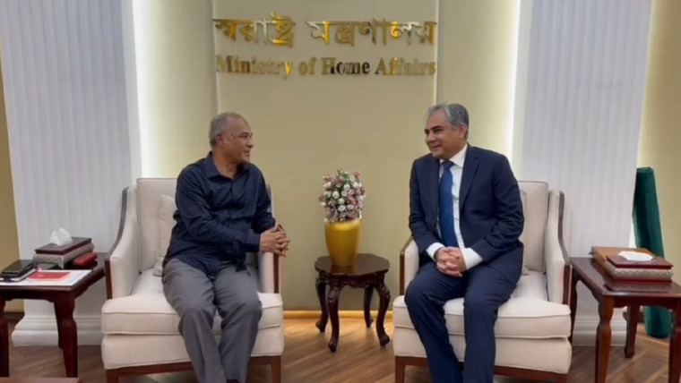 وفاقی وزیر داخلہ محسن نقوی نے ڈھاکہ میں بنگلا دیشی ہم منصب لیفٹیننٹ جنرل (ر) جہانگیر عالم چودھری سے ملاقات کی، ان کا وزارت داخلہ پہنچنے پر بنگلا دیشی ہم منصب نے پرتپاک خیرمقدم کیا، گارڈ آف آنرز پیش کیا گیا۔