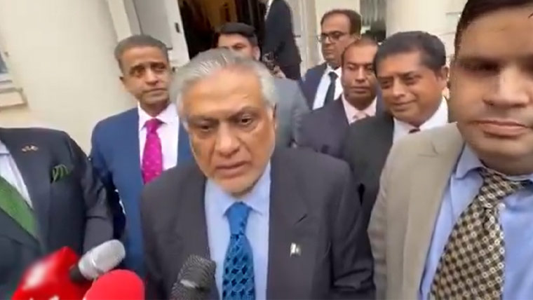 لندن میں پاکستانی ہائی کمیشن کے باہر گفتگو میں اسحاق ڈار نے کہا پاکستان نے معرکہ حق میں اپنے آپ کو دفاعی طور پر ثابت کردیا ہے ، اب معاشی طاقت بننے کا وقت ہے۔